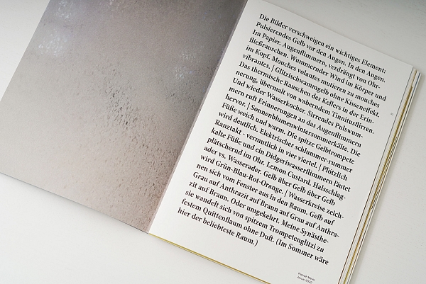 Die Publikation für Christiane Wien habe ich anlässlich ihrer Ausstellung „matières vibrantes“ (vom 05.12.2021 – 30.01.2022) in der Gesellschaft der Freunde junger Kunst im Alten Dampfbad in Baden-Baden gestaltet. Die Publikation ist in Art einer Zeitung produziert – bestehend aus ineinandergelegten Blättern.